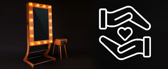 Der gesamte Spiegel ist ein großer Touchscreen. Diese intuitive Bedienung sorgt dafür, dass sich Ihre Gäste nicht mit langen Anleitungen herumärgern müssen, da über den Screen eine detaillierte Schritt-für-Schritt-Anweisung gegeben wird. Dabei sind aber nicht viele Schritte nötig, um ein hochwertiges Selfie zu bekommen: Einfach vor den Spiegel stellen, lustige Grimassen schneiden und warten, bis das Foto aus dem Drucker hervorgezaubert wird.